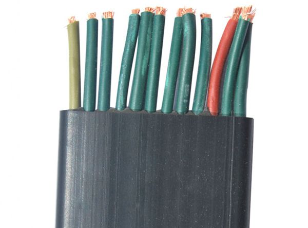 一、產(chǎn)品特點及用途 本產(chǎn)品具有耐寒、柔軟、耐磨、防油等特性,適用于交流額定電壓0.6KV/及下具有耐寒、防油等特殊要求的行車、臺車、傳輸機械等移動電器用動力傳輸線及控制、照明、通訊線路,本產(chǎn)品已廣泛用于冶金、電力、船舶、港口等行業(yè)。 分相屏蔽丁腈扁平電纜適用于作變頻器供電電纜。 二、使用特性 1.交流額定電壓:L。/U 0.6/1 KV *高工作溫度:105℃ *低環(huán)境溫度:固定敷設-40℃ 2.電纜安裝敷設溫度應不低于-25℃ 三、基本型號及名稱 表1 四、代號名稱含義 表2 備注:阻燃型扁平電纜型號前加ZR,導體線芯中銅絲中可以采用鍍錫 五、主要技術(shù)指標 1.成品電纜導體(R類)直流電阻《符合GB3956規(guī)定》 參照附錄A表1和表2。 2. 20C時絕緣電丨阻不小于50C5/KM 3.成品電纜經(jīng)受交流50HZ3.5KV/min電壓試驗不擊穿 六、基本電纜規(guī)格及結(jié)構(gòu)參數(shù) 注:YVFBP分相屏蔽電纜導體結(jié)構(gòu)及*大外徑參照上表數(shù)據(jù) 七、產(chǎn)品結(jié)構(gòu)示意圖