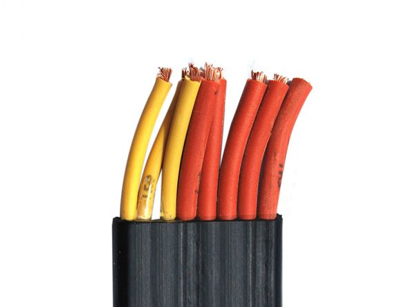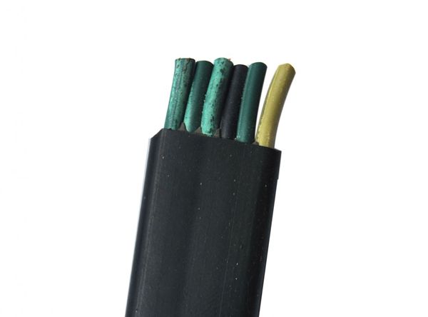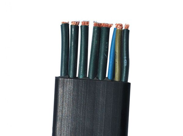 一、產(chǎn)品特點(diǎn)及用途  本產(chǎn)品具有耐寒、柔軟、耐磨、防油等特性,適用于交流額定電壓0.6KV/及下具有耐寒、防油等特殊要求的行車、臺(tái)車、傳輸機(jī)械等移動(dòng)電器用動(dòng)力傳輸線及控制、照明、通訊線路,本產(chǎn)品已廣泛用于冶金、電力、船舶、港口等行業(yè)。  分相屏蔽丁腈扁平電纜適用于作變頻器供電電纜。  二、使用特性  1.交流額定電壓:L。/U 0.6/1 KV  *高工作溫度:105℃  *低環(huán)境溫度:固定敷設(shè)-40℃  2.電纜安裝敷設(shè)溫度應(yīng)不低于-25℃  三、基本型號(hào)及名稱  表1  四、代號(hào)名稱含義  表2  備注:阻燃型扁平電纜型號(hào)前加ZR,導(dǎo)體線芯中銅絲中可以采用鍍錫  五、主要技術(shù)指標(biāo)  1.成品電纜導(dǎo)體(R類)直流電阻《符合GB3956規(guī)定》 參照附錄A表1和表2。  2. 20C時(shí)絕緣電丨阻不小于50C5/KM  3.成品電纜經(jīng)受交流50HZ3.5KV/min電壓試驗(yàn)不擊穿  六、基本電纜規(guī)格及結(jié)構(gòu)參數(shù)  注:YVFBP分相屏蔽電纜導(dǎo)體結(jié)構(gòu)及*大外徑參照上表數(shù)據(jù)  七、產(chǎn)品結(jié)構(gòu)示意圖
